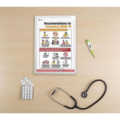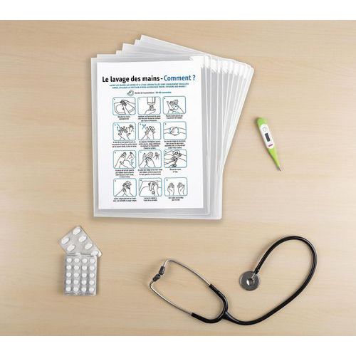 La única funda con esquina que permite distribuir y organizar los documentos en entornos donde la proliferación de microorganismos representa un riesgo.