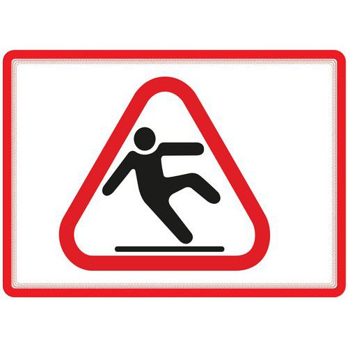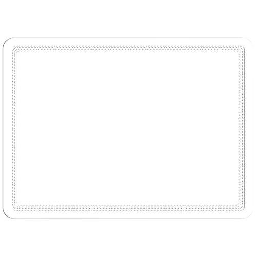 Funda con marco adhesiva con impresión a doble cara, diseño de líneas discontinuas. Cierre mediante 3 bandas adhesivas: sujeción perfecta del documento. Visualización a doble cara sobre cristal gracias al marco por ambas caras. Utilización con doble orientación: vertical u horizontal. Carpeta específica para grandes formatos.