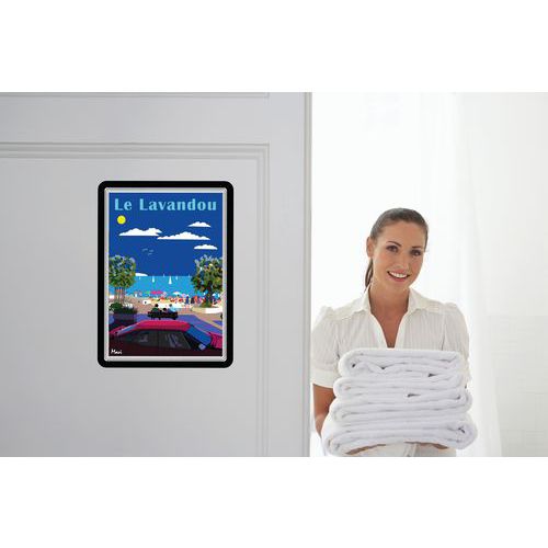 Funda con marco adhesiva con impresión a doble cara, diseño de líneas discontinuas. Cierre mediante 3 bandas adhesivas: sujeción perfecta del documento. Visualización a doble cara sobre cristal gracias al marco por ambas caras. Utilización con doble orientación: vertical u horizontal. Carpeta específica para grandes formatos. Fabricado en la UE
