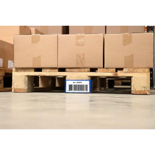 | Nombre del producto | Funda de identificación logística para pies de palés centrales, Color: Azul, Ancho: 100 mm, Altura: 72 mm |