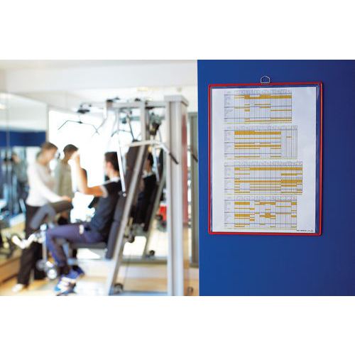 Funda de presentación de colgar para documentos A3, orientación vertical. Marco de alambre de acero irrompible TARIFOLD. Atractivos colores para una presentación temática. Superficie transparente antirreflejos. Asa metálica cromada muy resistente. Para fijación mural. Fabricada en Francia por Tarifold. Una práctica solución para mostrar y enmarcar cualquier tipo de documento A3. Ideal para la exposición en empresas, puntos de información, lugares públicos, pasillos y salas de recepción. Para mostrar documentos permanentes (horarios, normativas, seguridad, evacuación, instrucciones de higiene, etc.).
