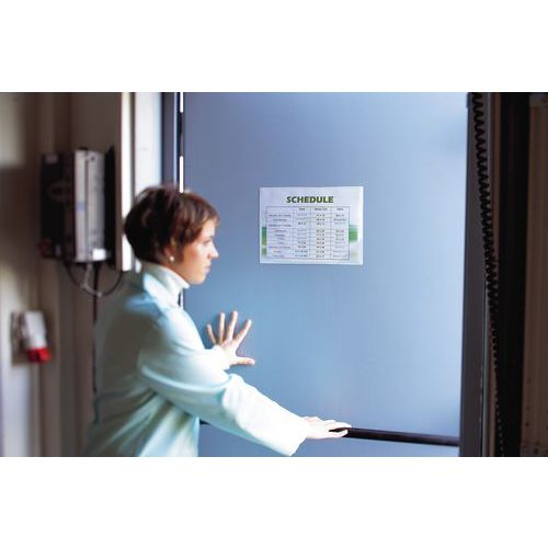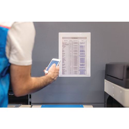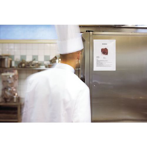 Las fundas magnéticas de visualización Kang Easy Load se fijan a cualquier superficie metálica. El dorso es totalmente magnético y se adhiere perfectamente. Apertura en 2 lados para facilitar la inserción de documentos. Cierre de esquina Easy Load: práctico y eficaz para introducir y extraer documentos. Instalación sencilla y rápida, sin tornillos ni clavos, se retira sin dejar restos. Utilización vertical y horizontal. Solución de visualización para su uso en máquinas, puertas, paneles metálicos, frigoríficos, etc. Funda de PVC con dorso magnético. Puede contener hasta 10 hojas de papel de 80 g. Fondo totalmente ecológico.