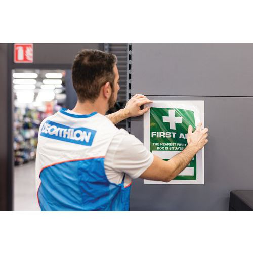 Las fundas magnéticas de visualización Kang Easy Load se fijan a cualquier superficie metálica. El dorso es totalmente magnético y se adhiere perfectamente. Apertura en 2 lados para facilitar la inserción de documentos. Cierre de esquina Easy Load: práctico y eficaz para introducir y extraer documentos. Instalación sencilla y rápida, sin tornillos ni clavos, se retira sin dejar restos. Utilización vertical y horizontal. Solución de visualización para su uso en máquinas, puertas, paneles metálicos, frigoríficos, etc. Funda de PVC con dorso magnético. Puede contener hasta 10 hojas de papel de 80 g. Fondo totalmente ecológico. Fabricado en la UE