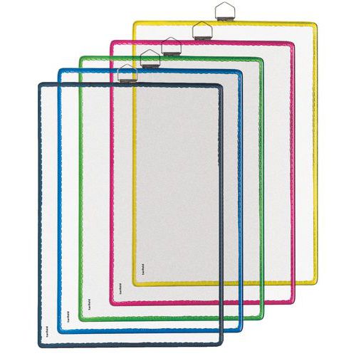 Funda de presentación de colgar para documentos A3, orientación vertical. Marco de alambre de acero irrompible TARIFOLD. Atractivos colores para una presentación temática. Superficie transparente antirreflejos. Asa metálica cromada muy resistente. Para fijación mural. Fabricada en Francia por Tarifold. Una práctica solución para mostrar y enmarcar cualquier tipo de documento A3. Ideal para la exposición en empresas, puntos de información, lugares públicos, pasillos y salas de recepción. Para mostrar documentos permanentes (horarios, normativas, seguridad, evacuación, instrucciones de higiene, etc.).