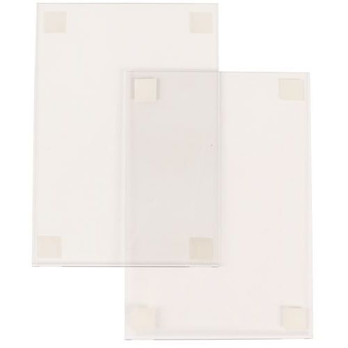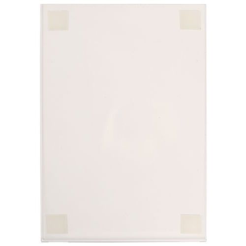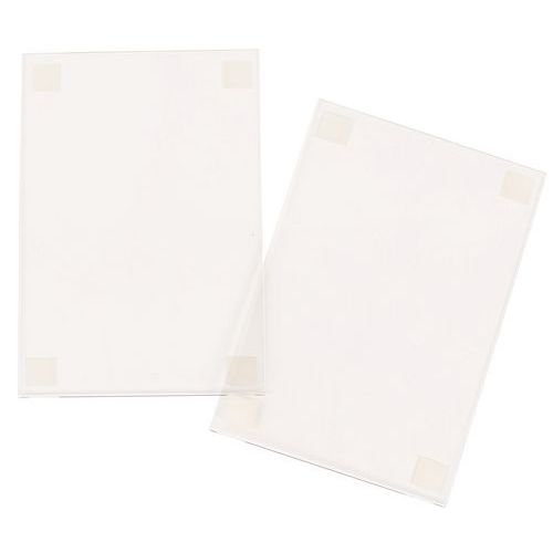 Funda expositora transparente semirrígida con discos de cinta adhesiva. Utilización en formato vertical u horizontal. Fijación rápida y sencilla a cualquier soporte liso. Documento fácil de insertar a través de la abertura lateral.