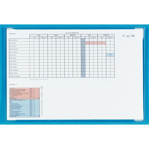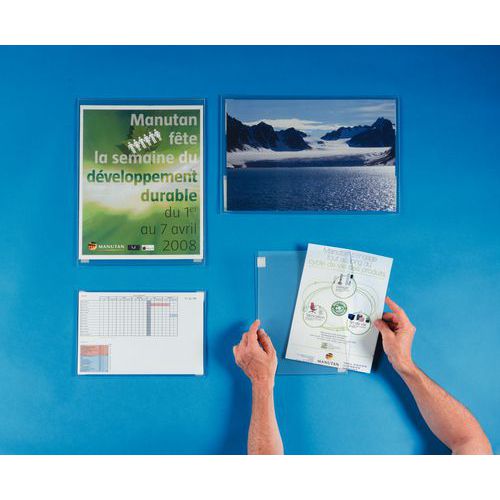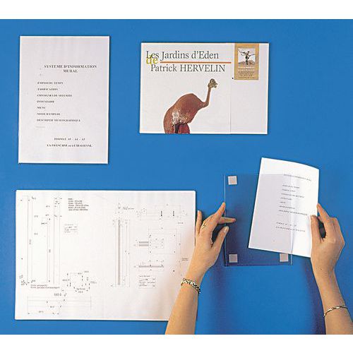 - Portadocumento de PVC semirrígido con discos de cinta adhesiva.