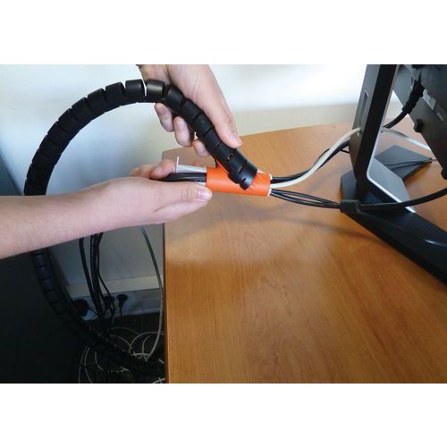 - La práctica funda guardacables se puede instalar en cables ya conectados.
