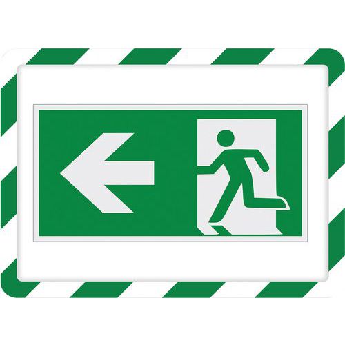Funda-marco de exposición, Material: PVC, Tipo de señal: Evacuación, Color: Verde/blanco