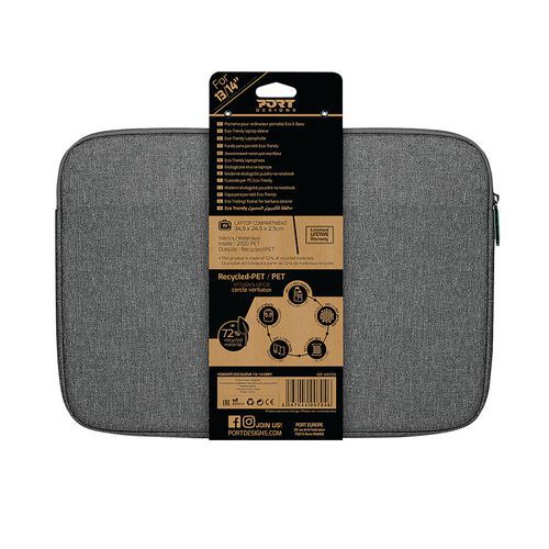 Funda ecológica para portátil, ultraligera y compacta. Gran bolsillo frontal con cremallera de acceso rápido, ideal para cargador, smartphone, etc. Estructura de la funda totalmente acolchada para máxima protección. Bonito acabado con cierre metálico ultrarresistente y elegante.
