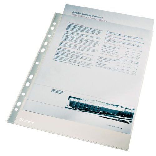 | Nombre del producto | Funda perforada A4 de polipropileno lisa, 105µ, x100, Color: Transparente, Para formato: 210 x 297 mm (A4) |