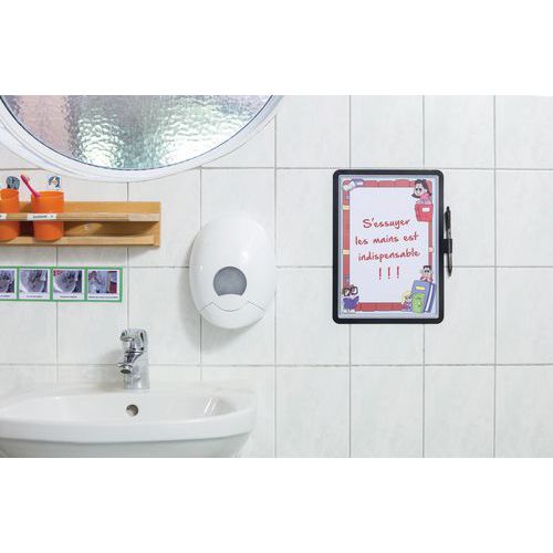 Atención, adhesivo reubicable para su visualización en todas las superficies lisas y limpias (se despega y se pega sin dejar rastro). Puede contener hasta 5 hojas de 80g/m² cada una.