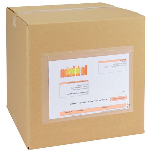 Funda portadocumentos muy sólida, de plástico y kraft. Película inferior de polipropileno tratado de alta calidad corona de 1 cara. Soporte inferior de papel kraft blanco siliconado autoadhesivo. Funda de expedición en masa adhesiva Hot Melt sin disolventes. Fabricado en la UE