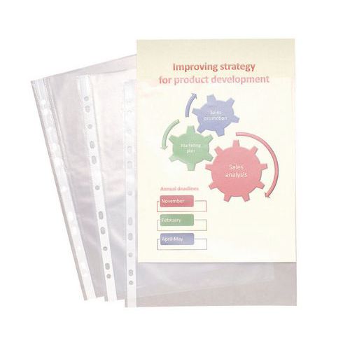 | Nombre del producto | Fundas perforadas de PP granulado paquete 100, Color: Transparente, Material: Polipropileno, Espesor: 0.05 mm |