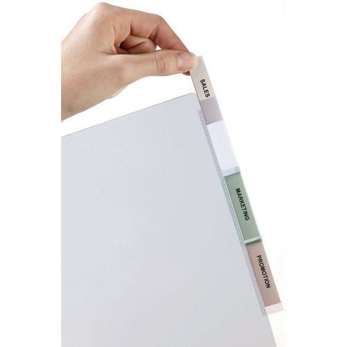 Pestañas de cartulina para personalizar sus categorías de documentos (anverso y reverso).