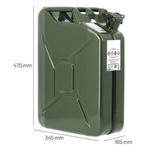 | Nombre del producto | Garrafa gasolina, Capacidad: 20 L, Color: Verde, Tipo: Gasolina, Longitud: 345 mm, Ancho: 165 mm |