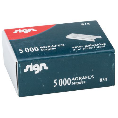 | Nombre del producto | Grapas Sign 8/4, Tipo de grapas: 8/4, N.º de grapas/caja: 5000, Embalaje reciclable: Sí - 100% |