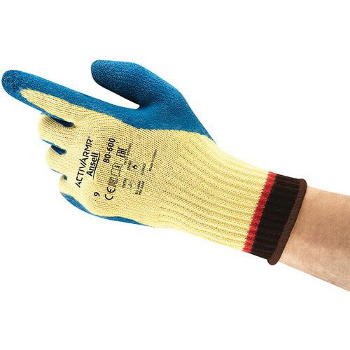 El revestimiento de látex de caucho natural de los guantes industriales ActivArmr® 80-600 presenta un acabado rugoso en relieve.