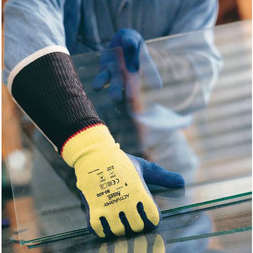 Gracias a la combinación de un revestimiento de látex de caucho natural y un forro tejido de Kevlar®, estos guantes resistentes a la abrasión cumplen las normas ANSI A2/EN ISO C de resistencia a los cortes, permitiendo a los trabajadores manipular con seguridad vidrio, metal y plásticos.