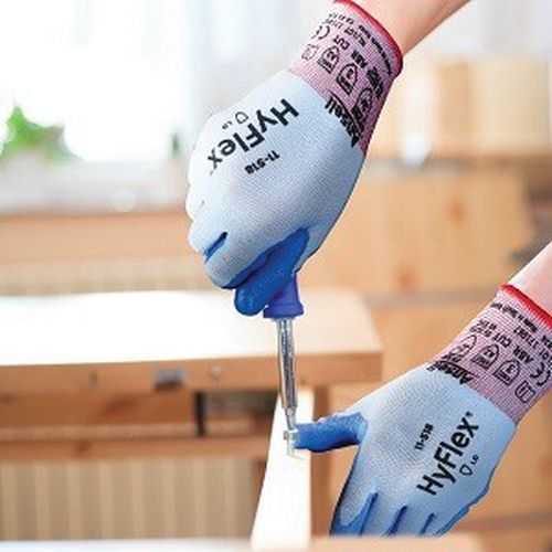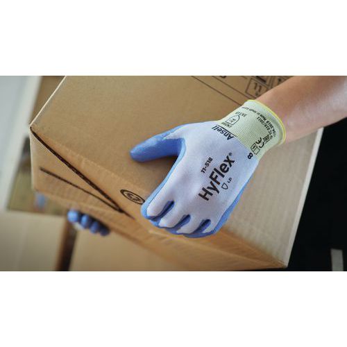 El forro ultraligero sin costuras de los guantes de trabajo industriales HyFlex® 11-518 proporciona a los usuarios una sensación casi de manos desnudas.