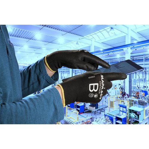 Guantes con protección anticortes B, una gran durabilidad combinada con una alta flexibilidad gracias al PEAD contenido en el tejido. Compatibles con las pantallas táctiles. Lavables hasta 5 veces a 40 °C, sin alteración del rendimiento* para prolongar la vida útil de los guantes y reducir los costes y los residuos. Certificación OEKO-TEX.