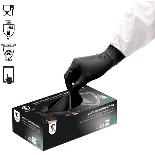 Guantes de examen de nitrilo, Materia: Nitrilo, Alimentario: sí, Color: Negro, Guante tamaño: 9