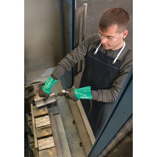 Los guantes de protección AlphaTec® 58-128 también cuentan con un polímero de revestimiento con tecnología ANSELL GRIP™ Technology, que mejora el agarre al manipular piezas húmedas o aceitosas.