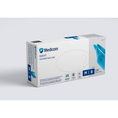 | Nombre del producto | Guantes desechables de nitrilo Coverfeel Care con puño largo, Material textil: Nitrilo, Color: Azul |
