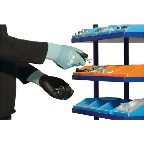Guantes ideales para trabajos de montaje de piezas metálicas, pequeños trabajos de mantenimiento y manipulación ligera. Apto para el contacto con ciertos tipos de alimentos. Sectores de actividad: ingeniería mecánica y mantenimiento. Revestimiento transpirable para una mayor comodidad de uso. Forma anatómica para bordes de precisión. Resistente y adaptado para uso prolongado. Lavable hasta 1 vez a 40 °C.