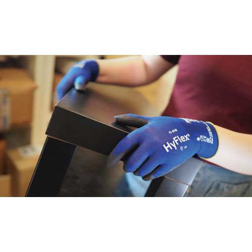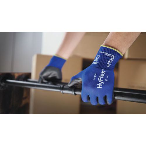 - El revestimiento extrafino de PU de estos guantes HyFlex® ofrece una sensibilidad táctil óptima y una sensación de segunda piel.