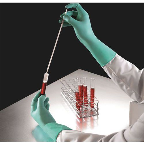 Material antialérgico: previene las reacciones alérgicas al látex de tipo I. Proporciona una fuerte protección contra salpicaduras químicas de la mayoría de ácidos y alcoholes y certificación de resistencia química EN 374 Tipo B. Las puntas de los dedos texturizadas y el material de neopreno mejoran el agarre en entornos húmedos y secos. Protección certificada contra salpicaduras de productos químicos: protección contra ácidos/alcoholes. Su formulación sin látex previene las reacciones alérgicas de tipo 1 (látex). Con revestimiento de polímero, estos guantes MICROFLEX® son fáciles de poner.