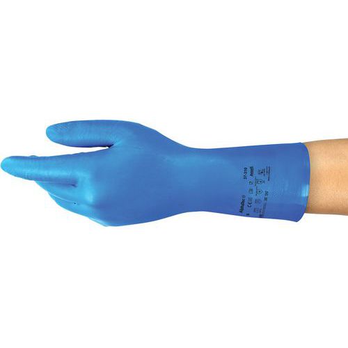 Los guantes PPE AlphaTec® 37-310 ofrecen protección química EN 374 Tipo B contra ácidos ligeros, grasas, aceites y líquidos.