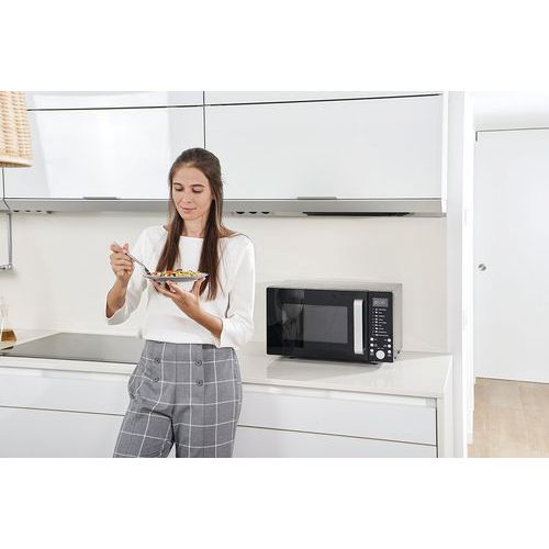 - Horno microondas de 900 W con 5 niveles de potencia y 8 programas de cocción.