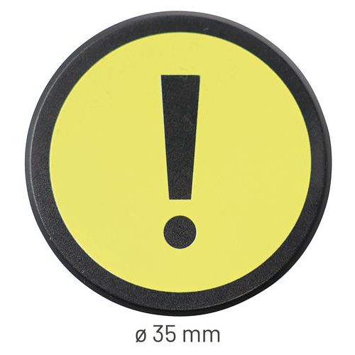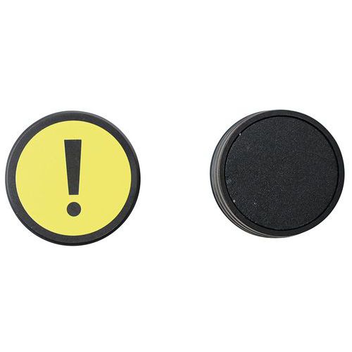 Imán redondo con signo de exclamación, Tipo: Signo de exclamación, Color: Amarillo, Ø: 35 mm Imán redondo con signo de exclamación, Tipo: Signo de exclamación, Color: Amarillo, Ø: 35 mm