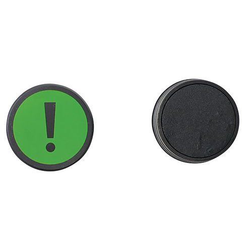 Imán redondo con signo de exclamación, Tipo: Signo de exclamación, Color: Verde, Ø: 35 mm Imán redondo con signo de exclamación, Tipo: Signo de exclamación, Color: Verde, Ø: 35 mm