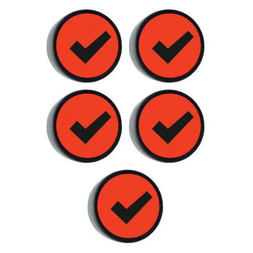Placa magnética redonda para colocar o fijar documentos en superficies metálicas. El color y el símbolo de verificación darán un pequeño toque alegre a sus carteles. Opte por una comunicación visual