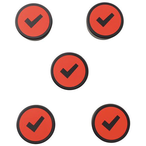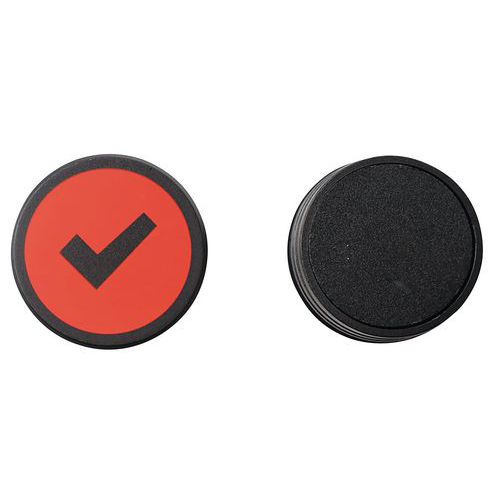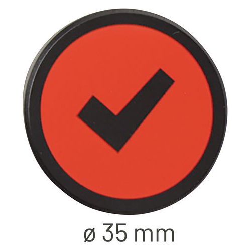 Imán redondo con símbolo de verificación, Tipo: Símbolo de verificación, Color: Rojo, Ø: 35 mm Imán redondo con símbolo de verificación, Tipo: Símbolo de verificación, Color: Rojo, Ø: 35 mm