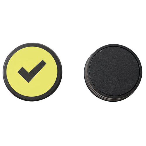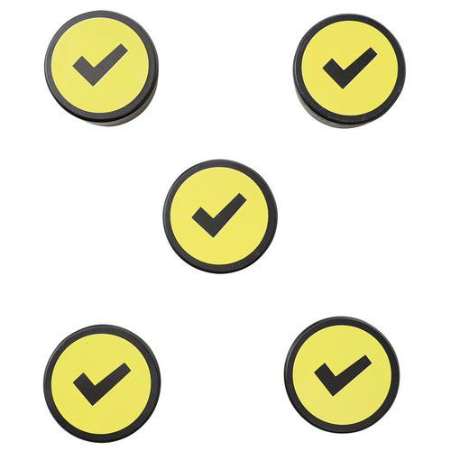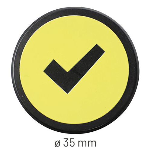 Imán redondo con símbolo de verificación, Tipo: Símbolo de verificación, Color: Amarillo, Ø: 35 mm Imán redondo con símbolo de verificación, Tipo: Símbolo de verificación, Color: Amarillo, Ø: 35 mm