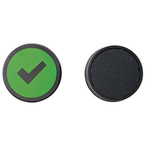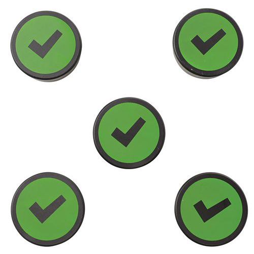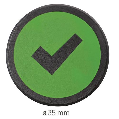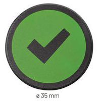 Imán redondo con símbolo de verificación, Tipo: Símbolo de verificación, Color: Verde, Ø: 35 mm Imán redondo con símbolo de verificación, Tipo: Símbolo de verificación, Color: Verde, Ø: 35 mm