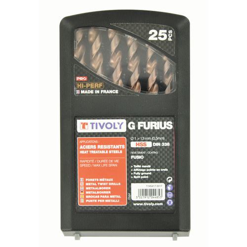 | Nombre del producto | Juego de brocas HSS Fusio, Nº de piezas: 25, Utilización: Taladrado, Ref. Fabricante: 11454170017 |