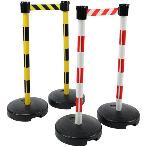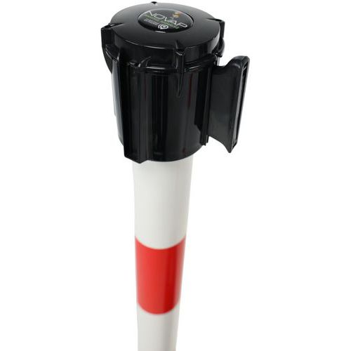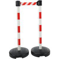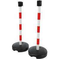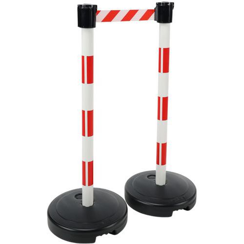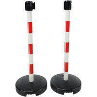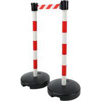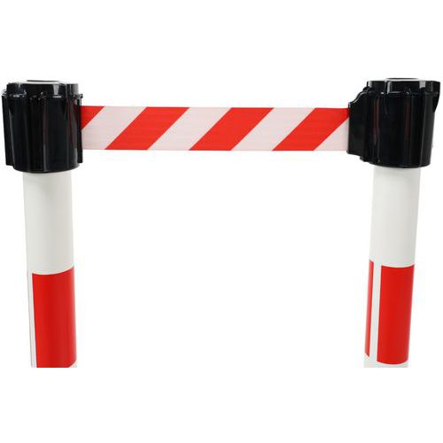 El kit consta de: 2 postes, uno con 1 cabeza con una cinta retráctil de 3 m de longitud y 50 mm de ancho y el otro con 1 cabeza receptora.