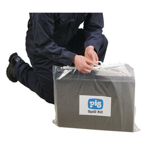 | Nombre del producto | Kit de absorbente universal en bolsa de 26,5 L, Líquidos absorbidos: Todos líquidos |