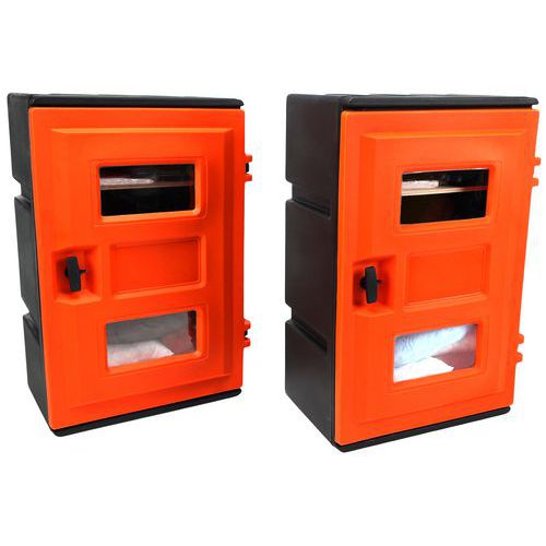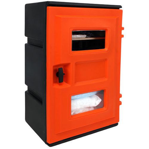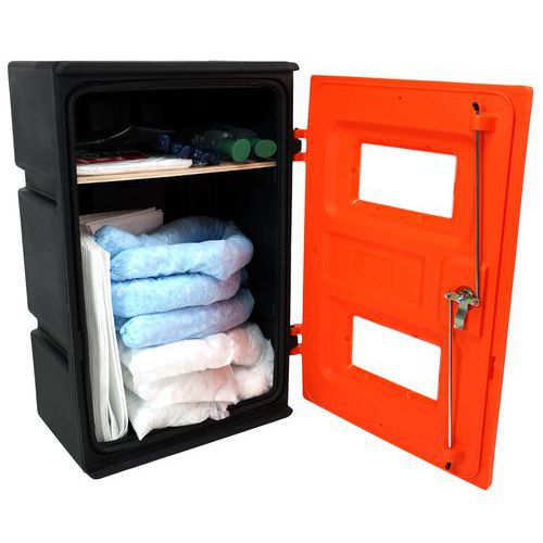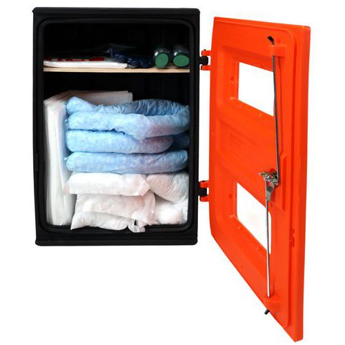 Kit de tamaño mediano que permite una protección completa en caso de accidente con fugas de líquidos. Resistente a la mayoría de los productos químicos y a los rayos ultravioleta, con una junta de goma de grado de automoción y ventanas moldeadas de policarbonato antirrayos ultravioletas. Dos versiones adaptadas al tipo de contaminación encontrada: hidrocarburos o todo tipo de líquidos. Los absorbentes y accesorios son de fácil acceso y claramente visibles. Formato de armario: se puede colgar o dejar en el suelo, puede utilizarse tanto en interiores como en exteriores.