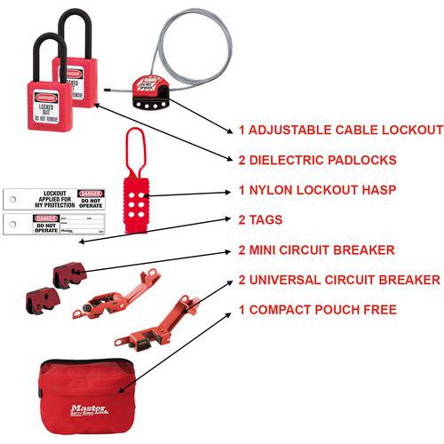 | Nombre del producto | Kit de bloqueo general Maintkit-En, Color: Rojo, Material: Elastómero termoplástico (TPE) |