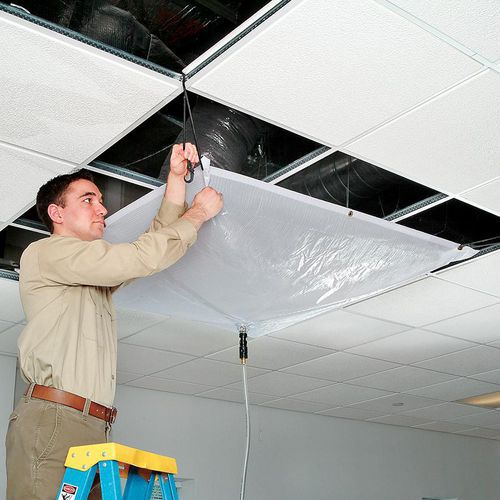 Este kit portátil con cubo es ideal para una intervención rápida ante fugas en altura. El kit se presenta en un cubo de 24,6 litros que sirve tanto para almacenar los componentes como para recoger el líquido desviado. La tapa del cubo cuenta con un tapón extraíble que permite insertar el tubo de evacuación sin necesidad de quitar la tapa. El cubo también puede utilizarse como recipiente de recogida del líquido desviado, el mensaje “Atención” impreso actúa como señal de advertencia. La lona impermeable está recubierta de vinilo para mayor resistencia y durabilidad, es resistente a perforaciones, rayos UV y moho, lo que garantiza una larga vida útil.
