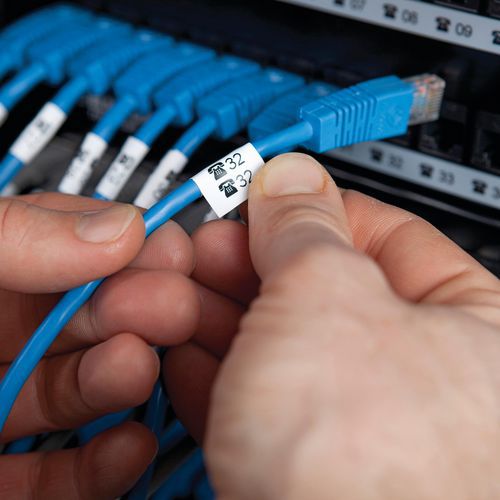 Kit de etiquetadora compacta y rápida para profesionales que se desplazan. Su teclado Azerty es fácil de usar. Introducción de texto rápida y cómoda, y formato de etiqueta personalizado. Tecla de favoritos para acceder a las etiquetas, los símbolos y los términos que se utilizan con frecuencia. Teclado de alto rendimiento, equivalente al de un ordenador, configurable según el país. Códigos de barras 39/128, etiquetas de longitud fija, etiquetas comunes y etiquetas de fusibles.