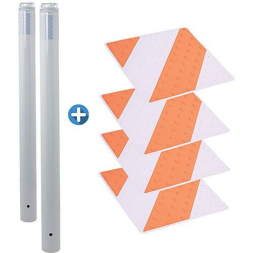 El kit consta de: 2 postes con LED + 4 baldosas podotáctiles bicolores.