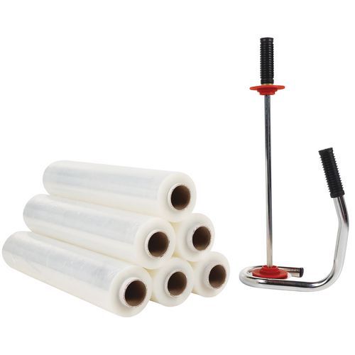 | Nombre del producto | Kit film extensible transparente con desenrollador metálico, Espesor: 20 µm, Longitud: 300 m, Ancho: 500 mm |