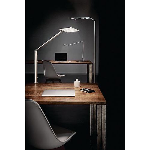 Lámpara de escritorio con LED de diseño muy fino, con elegante brazo articulado de aluminio de 2 elementos y paso de cables invisible. Base en pinza. Potencia de 4000K Fabricado en Alemania