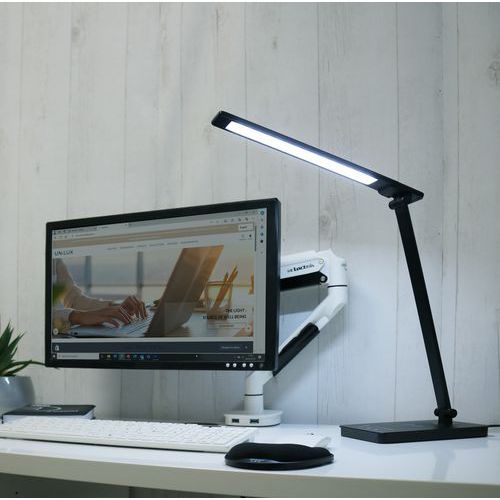 La lámpara de escritorio LED plegable Novy ofrece la máxima flexibilidad gracias a su cabezal giratorio. Gracias a su brazo ajustable y su base giratoria, puede utilizarse en varias posiciones. Diseño elegante de líneas depuradas y prácticas funciones como ajustes táctiles y puertos USB integrados. Por todo ello, es la elección ideal para una iluminación versátil y estable.