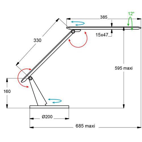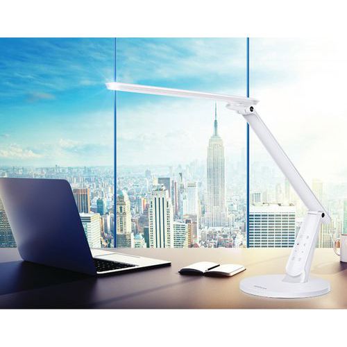 Lámpara de escritorio con cabezal inclinable de delante hacia atrás.